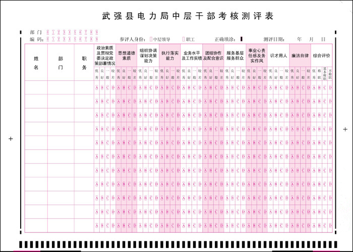 因?yàn)椋灾档眯刨嚕簽榱藢?shí)現(xiàn)數(shù)據(jù)的準(zhǔn)確識別,品科答題卡要按一定的格式與方法進(jìn)行設(shè)計(jì),設(shè)計(jì)人員需經(jīng)過培訓(xùn),才能設(shè)計(jì)出有效的信息卡。